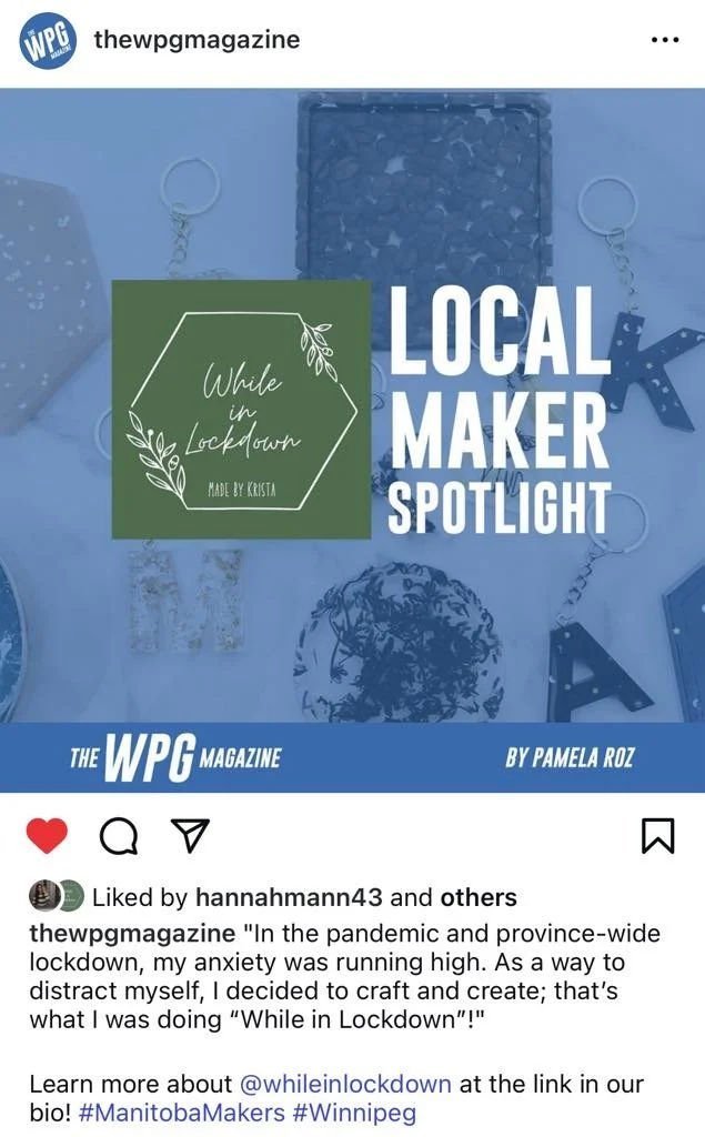 Back in 2021, my small business While in Lockdown, was featured in The WPG Magazine! Thank you @thewpgmagazine for the Local Maker Spotlight!